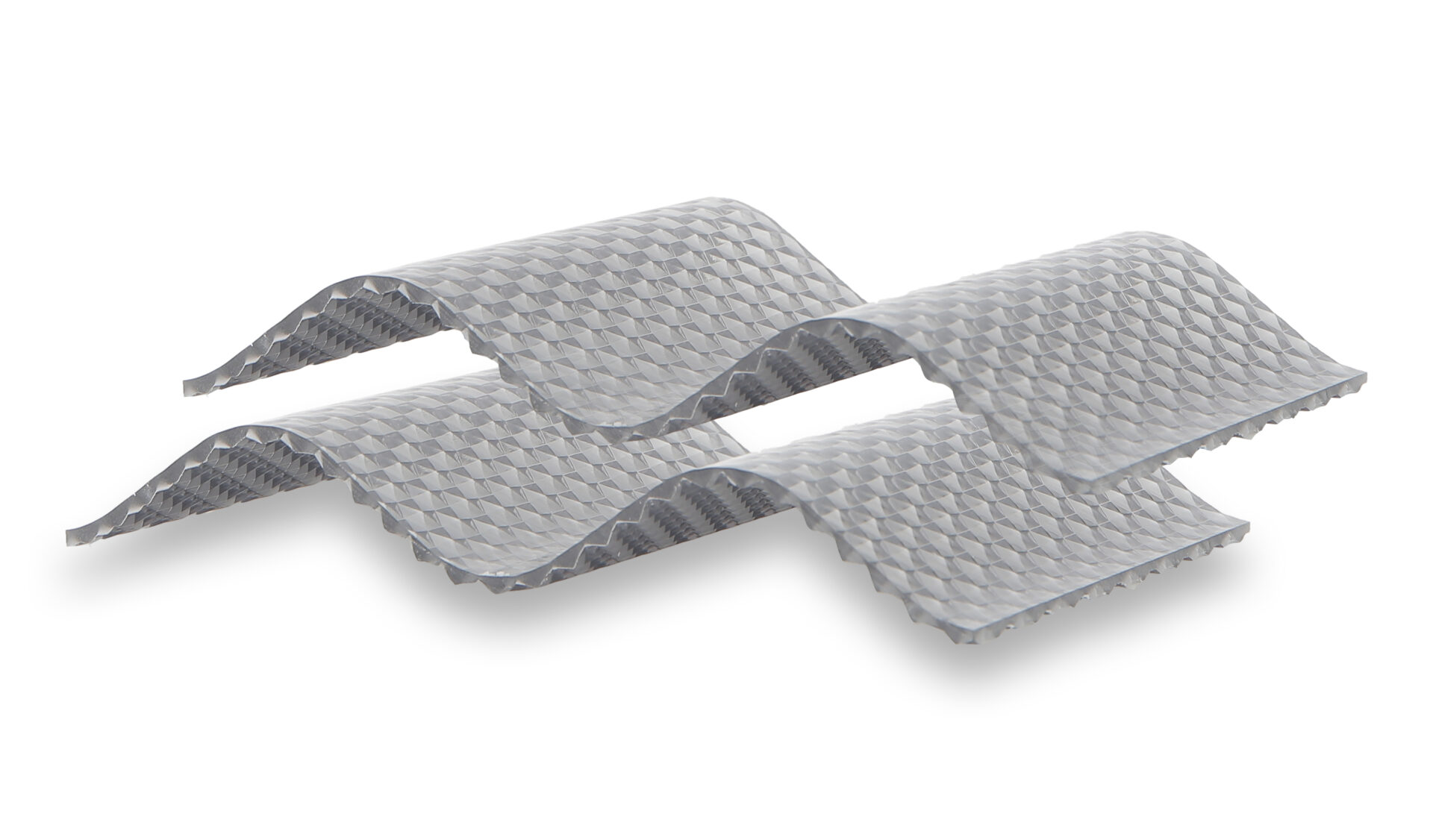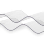 Wir bringen ein neues Produkt auf den Markt: eine transparente, mehrschichtige Polycarbonatplatte mit weißen, diagonalen Paneelen, die Schatten erzeugen, aber gleichzeitig auch Licht darunter.